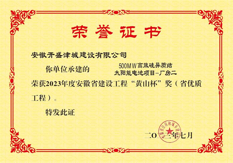• 黃山杯--“500MW高效硅異質(zhì)結(jié)太陽能電池項目-廠房二”